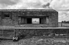 Man walking from a room in a field